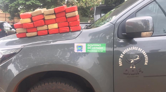 Ponta Porã, 30 de abril – Policiais do Departamento de Operações de Fronteira (DOF) apreenderam na manhã de hoje, um veículo Fiat Toro de cor cinza e placas falsas de Dourados (MS) carregado com 936,80 quilos de uma substância orgânica, aparentemente