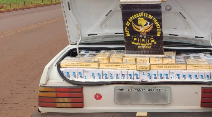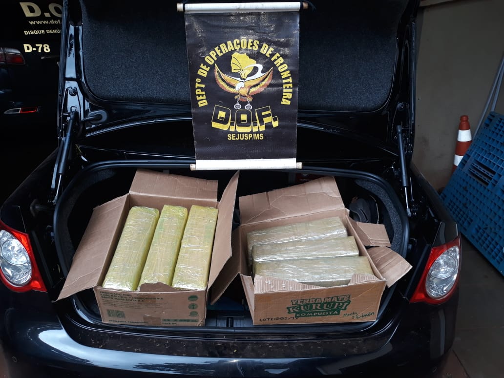 Dourados, 21 de abril – Policiais do Departamento de Operações de Fronteira (DOF) apreenderam na manhã de domingo, por volta das 10h50, um veículo Volkswagen Jetta de cor preta e placas de Maringá (PR) carregado com vários volumes prensados de uma
