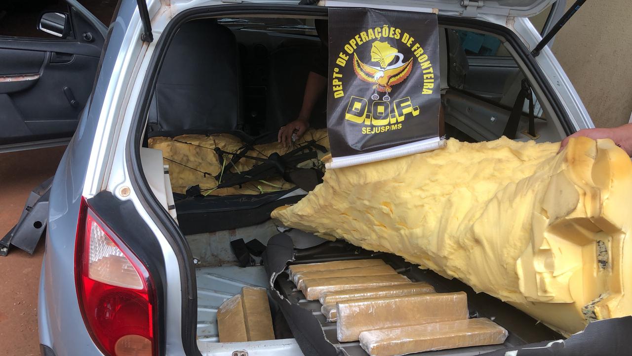 Dourados, 14 de abril – Policiais do Departamento de Operações de Fronteira (DOF) recuperaram na tarde de domingo, por volta das 16h30, um veículo Siena de cor prata e placas falsas de Brasília (DF) carregado com 380 quilos de uma substância