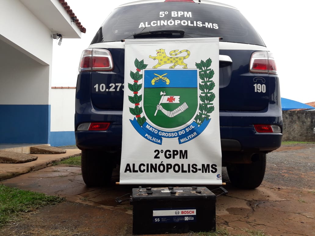 Coxim (MS) – A polícia militar de Alcinópolis na manhã de ontem (11/04), recuperou uma bateria furtada de caminhão no município. A Guarnição de Serviço recebeu uma ligação anônima pelo 190, informando que na Rua Juvenal José Dias no Bairro