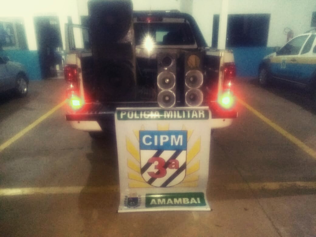 3ª CIPM Amambai (MS) – Na madrugada deste sábado (30), uma equipe de Rádio Patrulha da Unidade Policial Militar de Amambai apreendeu um som automotivo usado para perturbar o sossego na área central da cidade. Após várias chamadas 190 denunciando a