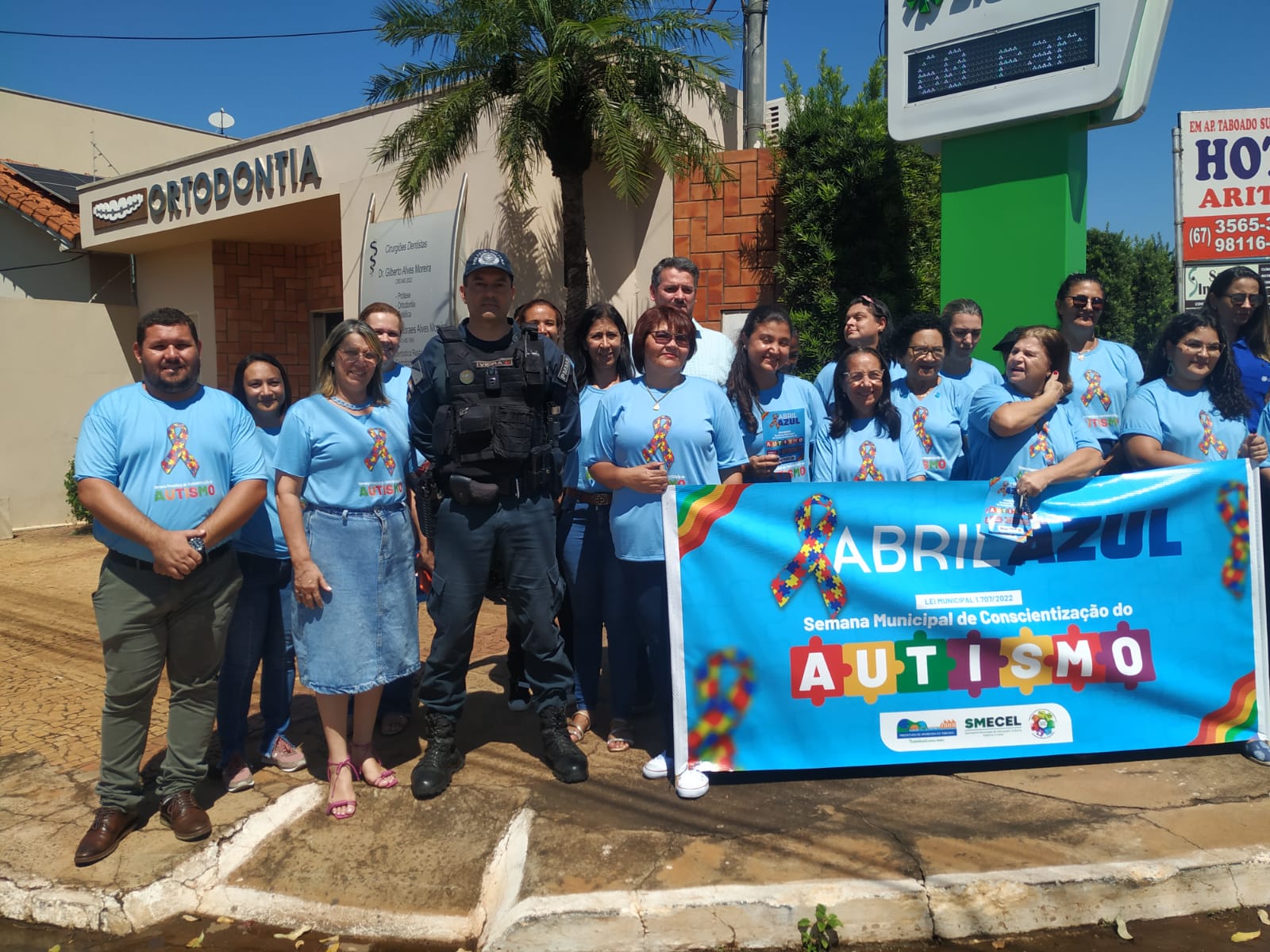 Aparecida do Taboado (MS) -Policiais militares de Aparecida do Taboado participaram hoje (03) de uma panfletagem em alusão à semana municipal de conscientização do autismo. A Semana Municipal da Conscientização do Autismo, criada pela lei municipal