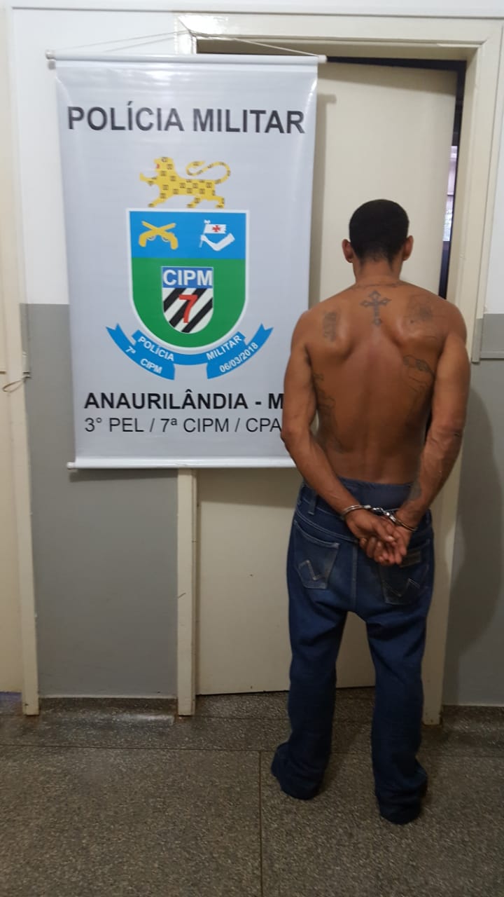 Anaurilândia-MS – Na tarde desta terça-feira (20.03), a guarnição da Polícia Militar em Anaurilândia prendeu um foragido da Justiça após ele tentar roubar o aparelho celular de um adolescente de 14 anos na área central da cidade. Os policiais