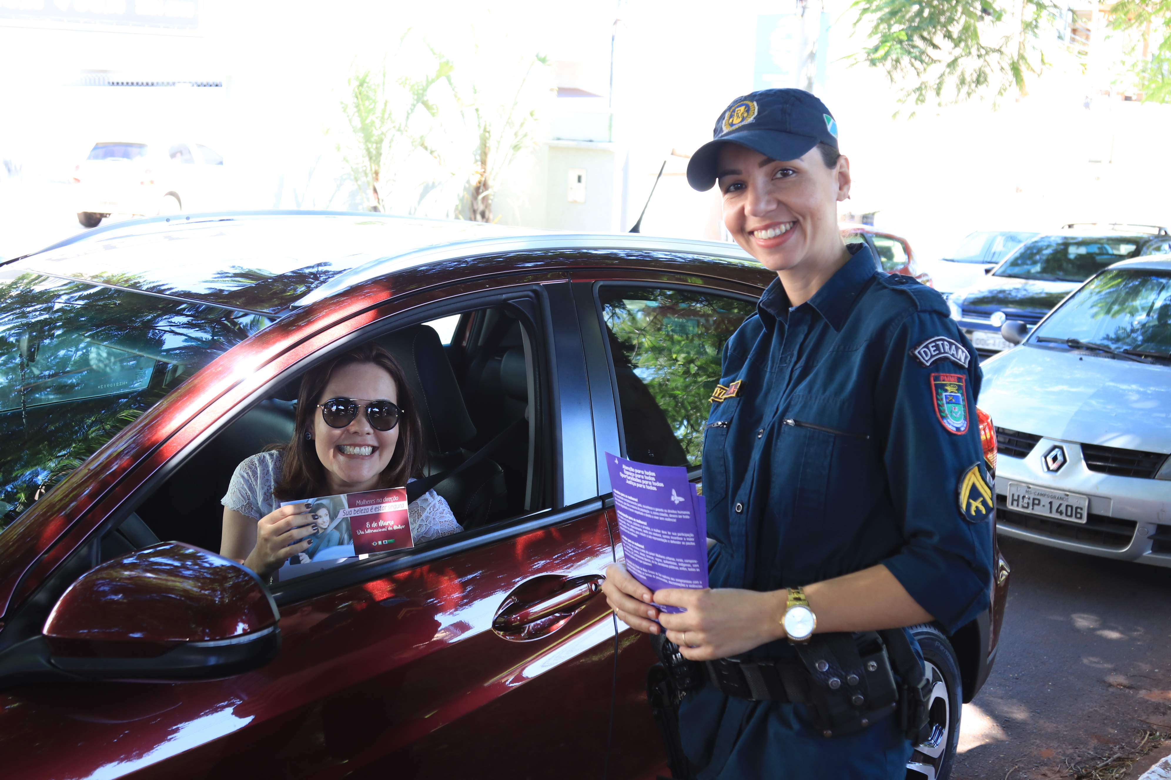Campo Grande(MS) – A Polícia Militar de Mato Grosso do Sul por meio do seu Batalhão de Trânsito realizou nesta sexta-feira(08/03), Dia Internacional da Mulher, Blitz Educativa alusiva a data em parceria com o Departamento Estadual de Trânsito e com a