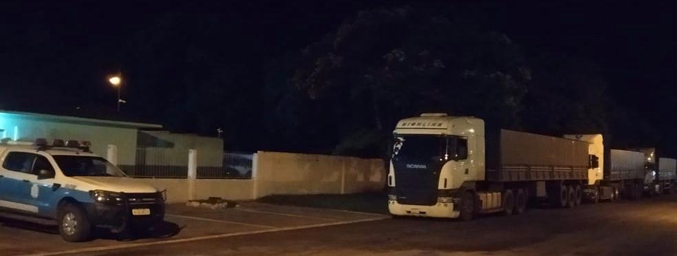 3ª CIPM Amambai (MS) – Na madrugada desta quinta-feira (7), uma equipe de rádio patrulha da Unidade Policial Militar de Sete Quedas abordou três carretas com placas paraguaias que transitavam com pneus novos de origem estrangeira e os condutores não