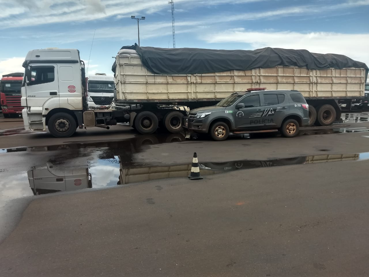 Sete Quedas (MS) – Policiais do Departamento de Operações de Fronteira (DOF) apreenderam na manhã de sábado (23), por volta das 11h53, um cavalo trator Mercedes Benz Axor 2544 S, de cor branca e placas de Londrina (PR) acoplado ao semirreboque com placa