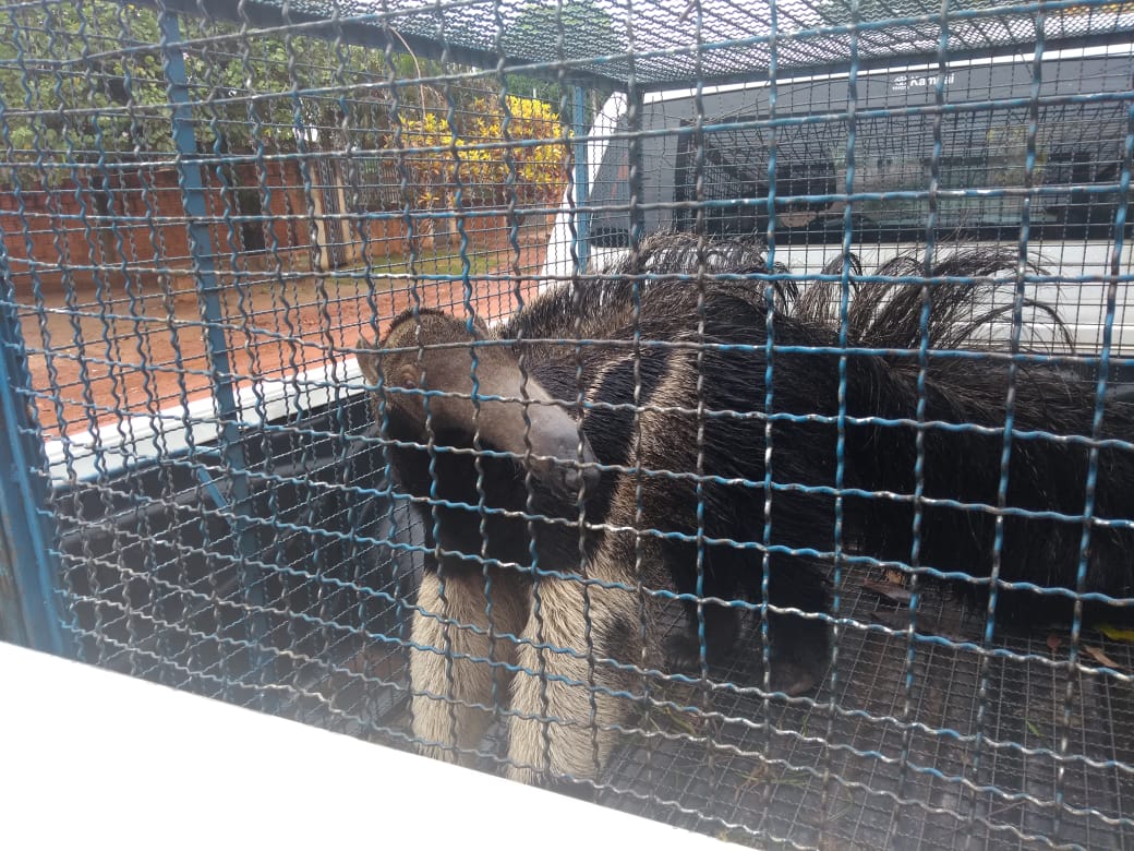 Campo Grande (MS) – Policiais Militares Ambientais de Coxim capturaram um animal silvestre da espécie Myrmecophaga tridactyla (Tamanduá-bandeira). Uma moradora do bairro Vila Bela telefonou ontem (21) à tarde para a PMA, informando que o animal