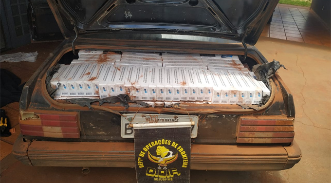 Maracaju (MS) – Policiais do Departamento de Operações de Fronteira (DOF) apreenderam na tarde de sábado (9), por volta das 15h, um veículo Monza de cor preta carregado com 500 pacotes de cigarros contrabandeados do Paraguai. A apreensão ocorreu