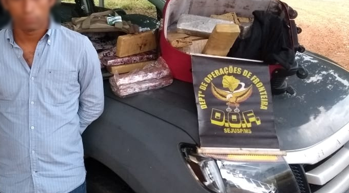 Ivinhema (MS) – Policiais do Departamento de Operações de Fronteira (DOF) prenderam na tarde de segunda-feira (4), por volta das 18h15, um homem de 25 anos de idade transportando 15,750 quilos de uma substância aparentando ser maconha, distribuídos em