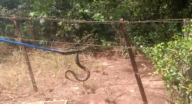Campo Grande (MS) – Policiais Militares Ambientais de Coxim capturaram hoje (4) uma serpente do gênero Bothrops (Jararaca), no perímetro urbano. A proprietária de uma residência, localizada em uma avenida principal da cidade, acionou a PMA, quando