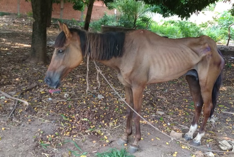 Campo Grande (MS) – Uma equipe de Policiais Militares Ambientais de Corumbá foi acionada ontem (30) à tarde, em virtude de situação de maus-tratos a uma égua. A PMA foi ao local, no bairro Cristo Redentor, e verificou que o animal estava amarrado em um