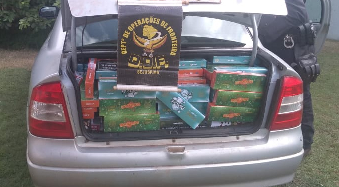 Maracaju (MS) – Policiais do Departamento de Operações de Fronteira (DOF) apreenderam na manhã desta segunda-feira (28), por volta das 9h30, um veículo GM Astra de cor prata e placas de Campo Grande (MS) carregados com 30 caixas de essência para