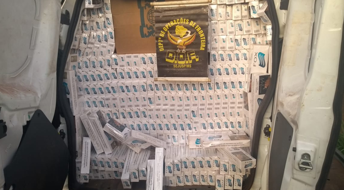 Dourados (MS) – Policiais do Departamento de Operações de Fronteira (DOF) apreenderam na madrugada de hoje (24), por volta das 3h30, um veículo Fiat Fiorino de cor branca e placas de Belo Horizonte (MG) carregado com 2000 pacotes de cigarros
