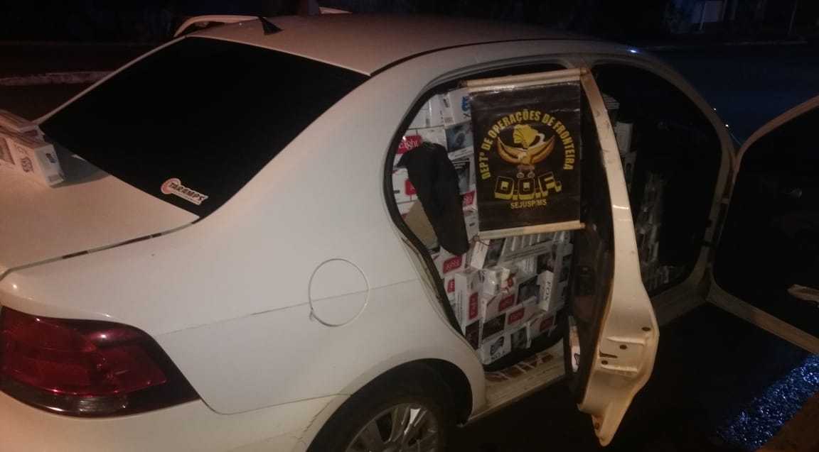 Maracaju (MS) – Policiais do Departamento de Operações de Fronteira (DOF) apreenderam na tarde de quarta-feira (9), por volta das 19h, um veículo VW Voyage de cor branca e placas de Rondonópolis (MT) carregado com cigarros contrabandeados do Paraguai. A