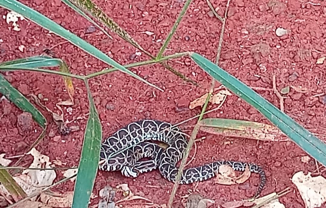 Campo Grande (MS) – Policiais Militares Ambientais de Jardim capturaram uma serpente peçonhenta da espécie Bothrops alternatus (conhecida como urutu-cruzeiro), depois de serem acionados ontem (24) no final da tarde, por uma moradora da rua Alagoas, no