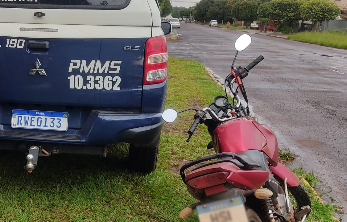São Gabriel do Oeste (MS) — Por volta das 16h15 deste sábado (25) a equipe de serviço realizava policiamento pelo Bairro Jardim Gramado, quando na Rua das Anhumas se depararam com o condutor de 18 anos conduzindo uma motocicleta Yamaha/Factor, sendo