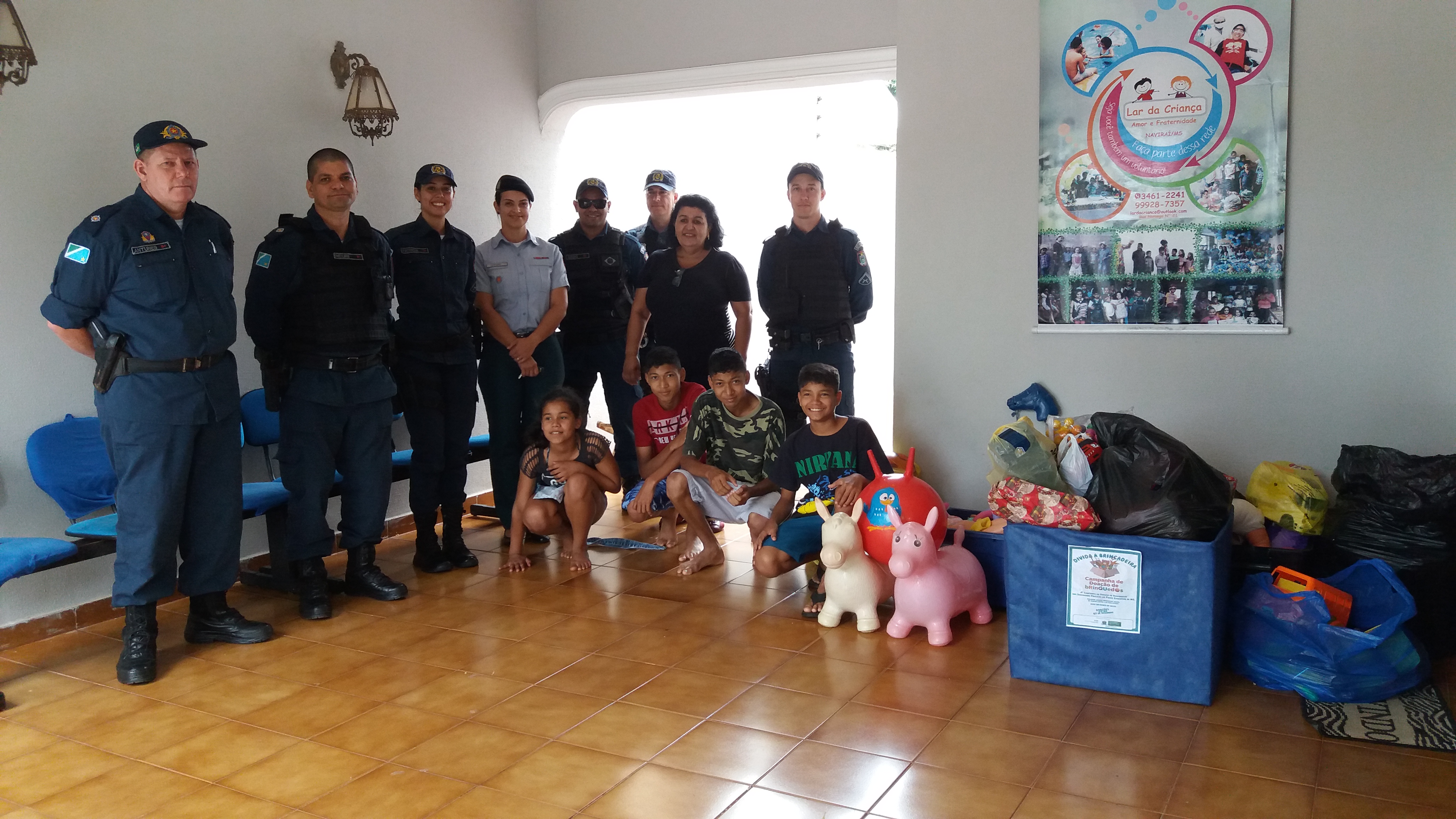 Naviraí (MS) – Na manhã desta sexta-feira (07), por volta das 10h30min, policiais militares lotados no 12º Batalhão de Polícia Militar de Naviraí, fizeram a entrega dos brinquedos arrecadados com a campanha – “Divida a brincadeira”