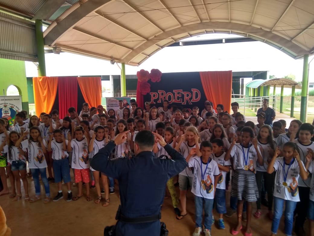 Naviraí (MS) – Na tarde de quarta-feira (05), o 12º Batalhão da Polícia Militar de Naviraí formou no PROERD (Programa Educacional de Resistência às Drogas e à Violência), aproximadamente, 150 alunos do 5º ano do Ensino Fundamental das Escolas