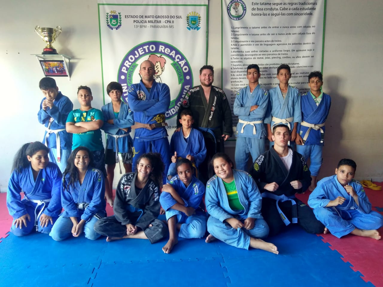 Paranaíba (MS) – Na tarde dessa sexta-feira (30/11), o Projeto ReAÇÃO, que é desenvolvido no quartel sede do 13º Batalhão de Polícia Militar em Paranaíba, ministrou mais uma instrução de artes marciais aos seus alunos. Veja conosco mais detalhes