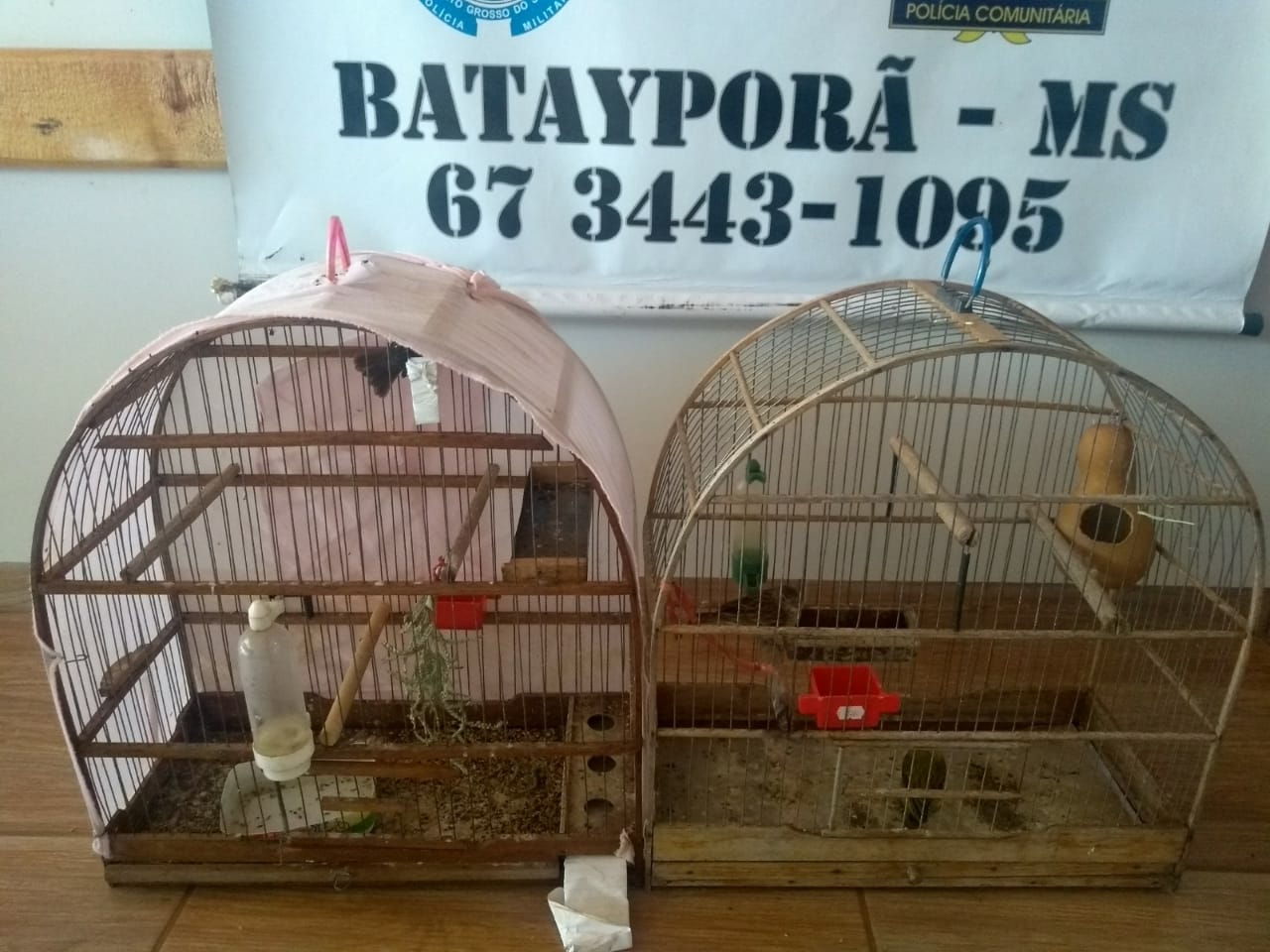 Campo Grande (MS) – Policiais Militares Ambientais de Batayporã e da Força Tática de Nova Andradina apreenderam hoje (1), três aves silvestres em duas gaiolas, sendo dois canários-da-terra e um coleiro-do-brejo, que eram mantidos em cativeiro sem