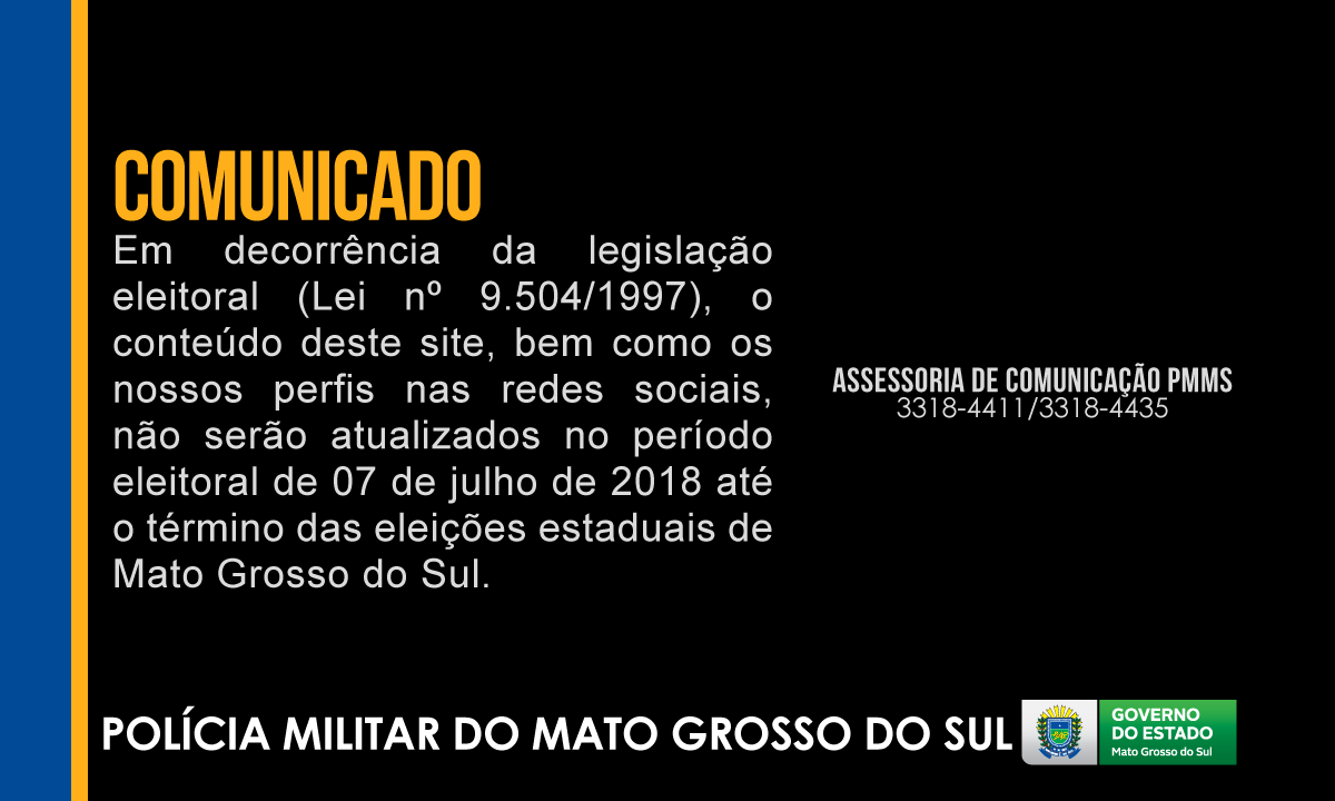 Campo Grande (MS) – A Polícia Militar de Mato Grosso do Sul na tarde desta quarta-feira (31/10), divulga o balanço das ações realizadas na última semana, do dia 22 de outubro a 28 de outubro de 2018. Confira os resultados do Balanço Semanal: