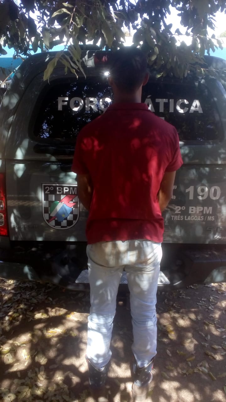 Três Lagoas (MS) – Ontem (05/07), por volta das 5h15min, uma guarnição da Força Tática prendeu um jovem de 27 anos foragido da justiça. Durante o patrulhamento preventivo pelo bairro Villa Haro, a guarnição abordou o jovem e durante a checagem