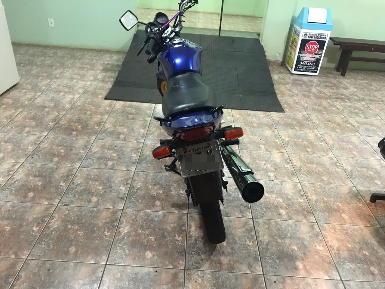 Campo Grande (MS) Nesta segunda – feira por volta das 18h, a equipe do Pelotão Popular/5ª CIPM efetuava rondas pela rua Radio Maio quando localizaram uma motocicleta Honda FAN 125, estacionada irregularmente na via, sendo que ao checar a placa da