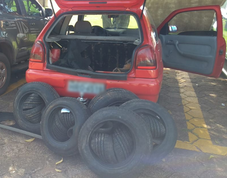 Ponta Porã (MS) – Policiais do Departamento de Operações de Fronteira (DOF) apreenderam na manhã de segunda-feira (2), por volta das 9h20, um veículo VW Gol de cor vermelha carregado com 18 (dezoito) pneus, sem a documentação de regularidade fiscal,