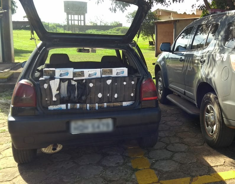 Ponta Porã (MS) – Policiais do Departamento de Operações de Fronteira (DOF) apreenderam na manhã de segunda-feira (2), por volta das 9h40, um veículo VW Gol de cor preta carregado com dez caixas de cigarros adquiridos no Paraguai sem a documentação