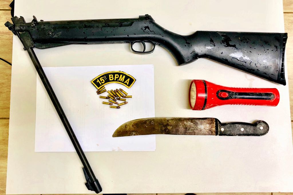 Campo Grande (MS) – Policiais Militares Ambientais de Naviraí receberam denúncias de caça ilegal, em propriedades rurais localizadas nas proximidades da rodovia MS 180 e realizaram fiscalização na região, prendendo ontem (1) à noite, um caçador de
