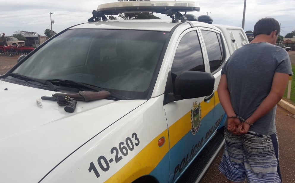 Jaraguari (MS) – Na segunda (25) por volta das 11h30min, Policiais Militares do Pelotão de Jaraguari prenderam um homem de setenta e nove anos de idade por violência doméstica e posse irregular de arma de fogo. Os policiais militares foram acionados