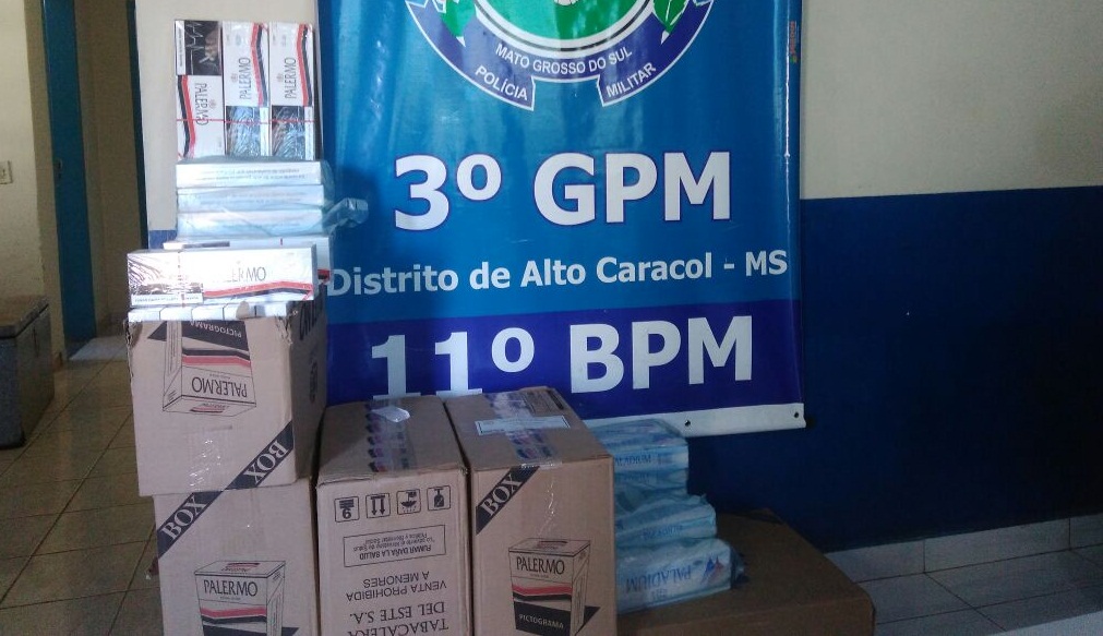 Jardim (MS) – Ontem (23.06), os Policiais Militares da 3º Grupamento de Alto Caracol prenderam dois indivíduos por Contrabando de 255 Pacotes de Cigarros oriundos do Paraguai. A equipe policial realizava policiamento ostensivo e preventivo, no momento