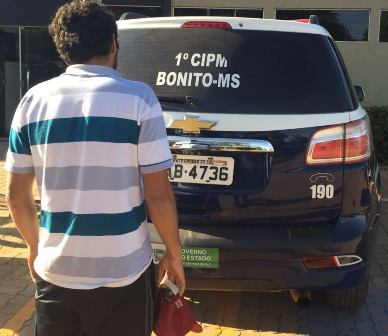 Bonito(MS) Na tarde de hoje(20) uma das equipes de Radiopatrulha realizava rondas pelo centro da cidade, quando avistaram o autor(19 anos) trafegando pela via publica, e como era de conhecimento dos policiais que o mesmo possuía em seu desfavor