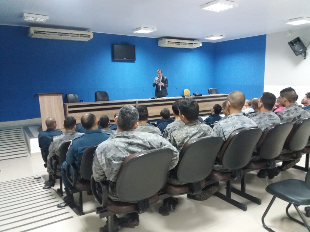 Três Lagoas (MS) – Na manhã de hoje (19/06), parte do efetivo do 2°BPM, incluindo os Alunos do Curso de Formação de Cabos e os policiais da Força Tática participaram de palestra ministrada pelo juiz Dr. Rodrigo Pedrini Marcos. O tema da palestra foi