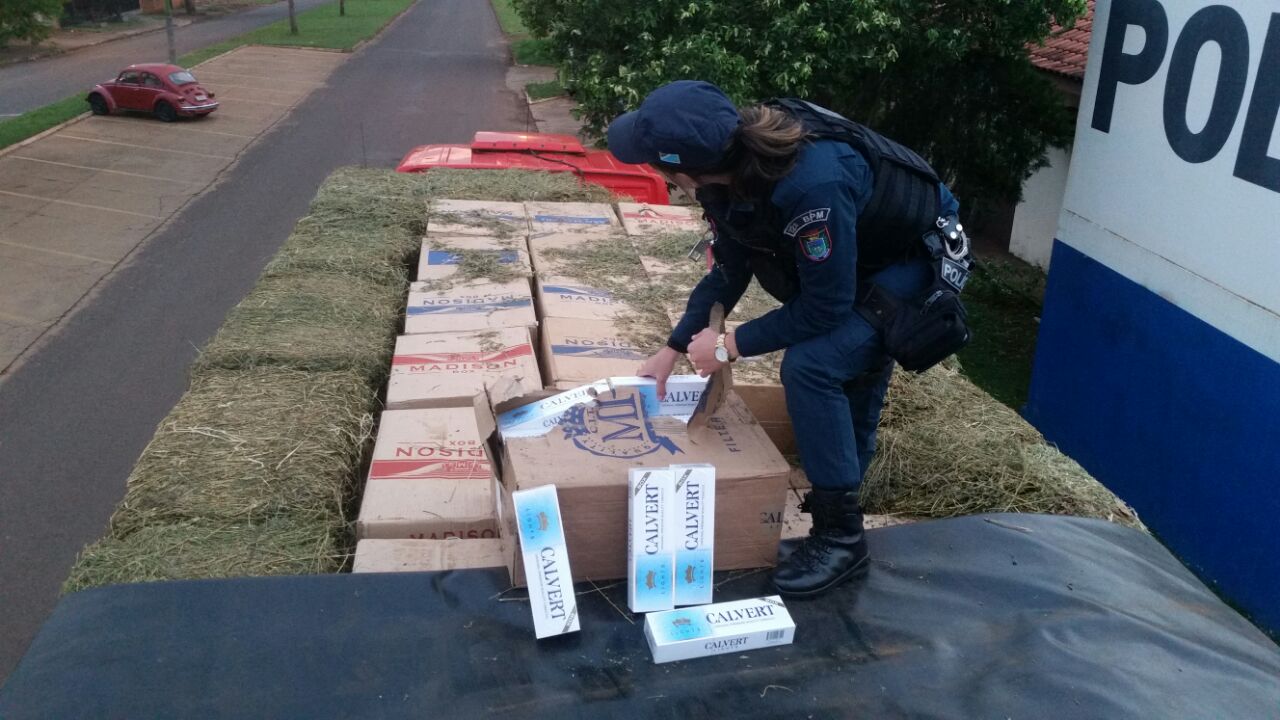 Naviraí (MS) – Na tarde desta quarta-feira (13), por volta das 15h00min, policiais militares lotados no 12º Batalhão de Polícia Militar de Naviraí, receberam denúncia, via Central de Operações, de que uma carreta graneleira, carregada com cigarros