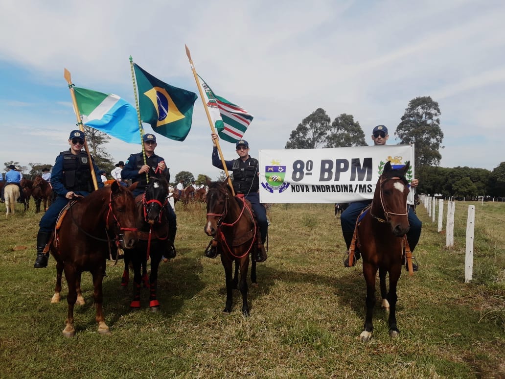 Nova Andradina (MS) – Na manhã de sábado (08), a Polícia Militar de Nova Andradina participou do tradicional desfile de cavaleiros na abertura da Expojuna 2018. A cavalgada teve sua concentração inicial na Chácara dos Irmãos Capucci localizada no