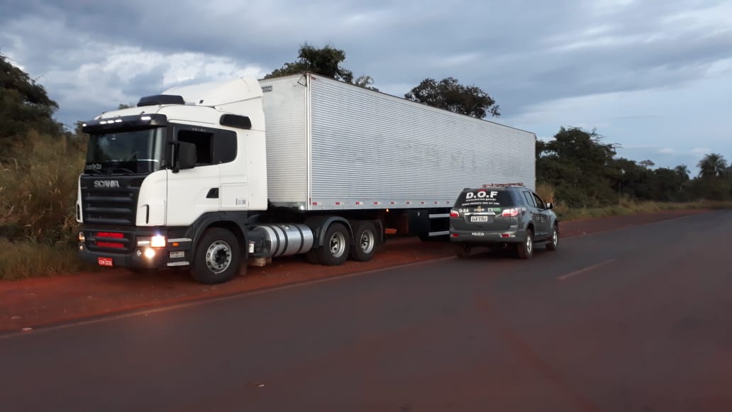 Iguatemi (MS) – Policiais do Departamento de Operações de Fronteira (DOF) apreenderam na manhã de terça-feira (12), por volta das 5h30, um caminhão trator de cor branca acoplando a um semirreboque carregado com 60.000 pacotes de cigarros,