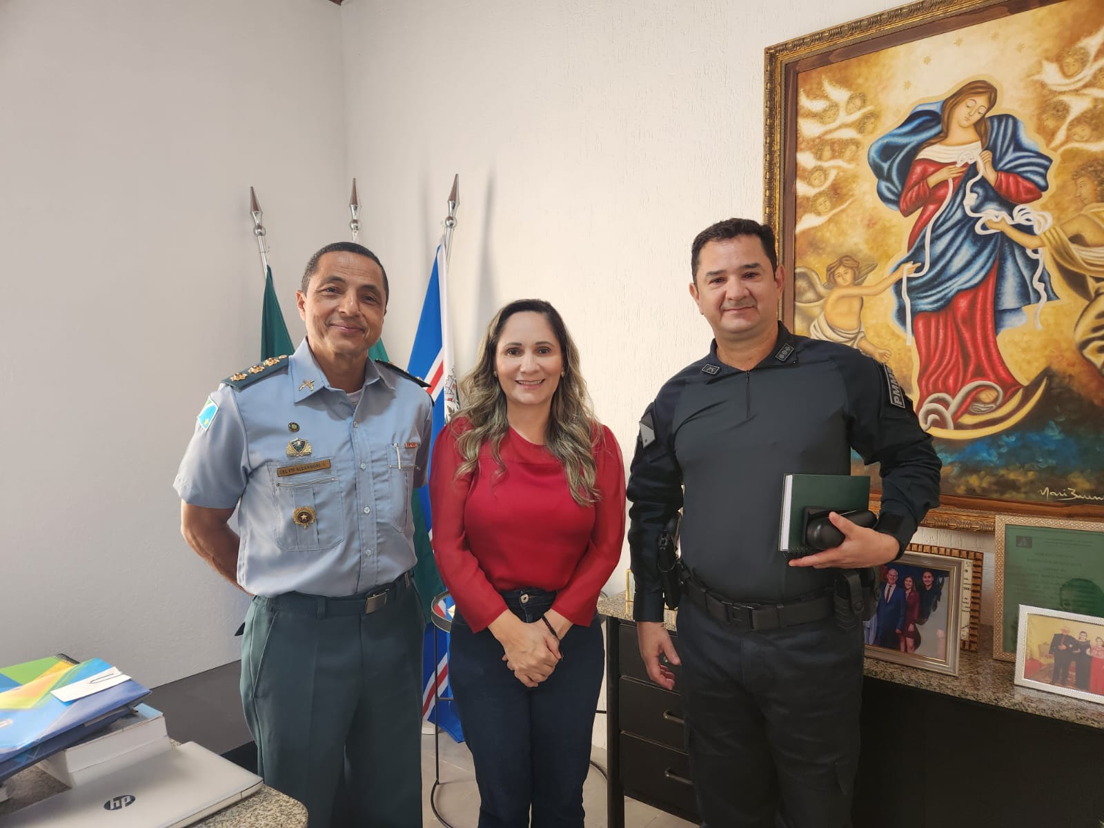 Campo Grande (MS) – O Diretor da Diretoria de Polícia Comunitária e Direitos Humanos da PMMS (DPCOM), Coronel PM Alexandre Rosa Ferreira, acompanhado do Comandante do 11º Batalhão de Polícia Militar (11º BPM), Tenente-Coronel PM Adilson Paiva