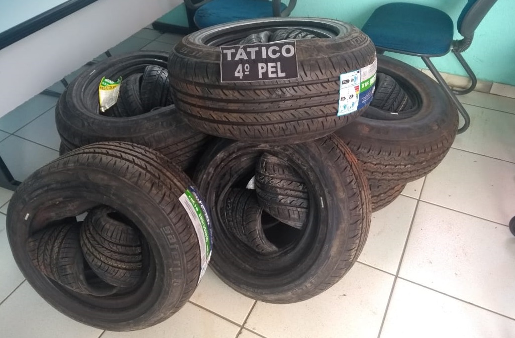 Jardim (MS) – Ontem e hoje (05 e 06), em ocorrências distintas, o 11º BPM apreendeu 33 pneus e 132 pacotes de cigarros contrabandeados. Ontem (05), a equipe da Força Tática do 4º Pelotão de Nioaque, durante policiamento ostensivo e preventivo, em uma