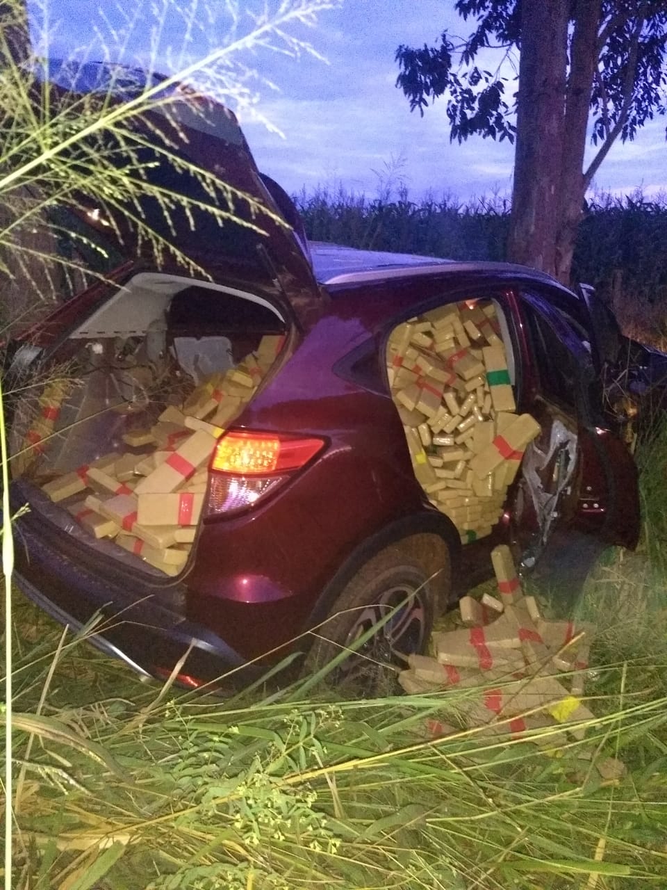 Amambai (MS) – Policiais do Departamento de Operações de Fronteira (DOF) apreenderam, na madrugada de quarta-feira (6) por volta das 4h30, um veículo CRV vermelho com placas de Maringá, PR carregado com 1.062 quilos de uma substância aparentando ser