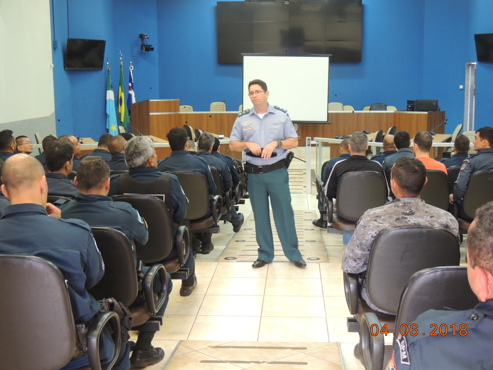 Três Lagoas (MS) – Na manhã de ontem (04/05), por volta das 07h30min, o comandante do 2º Batalhão de Polícia Militar, Major Ênio de Souza Soares, se reuniu com os policiais durante a realização da formatura geral que aconteceu no Plenário da