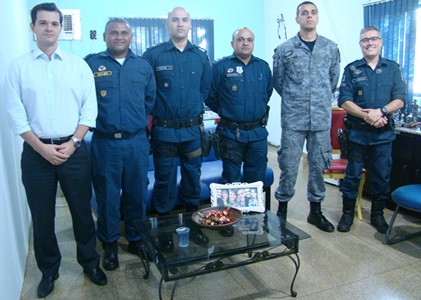 Nova Andradina (MS) – O Comandante do 8º BPM Tenente Coronel Josafá Pereira Dominoni, recebeu na segunda (28) a visita do Promotor Fabrício Secafen Mingati. Acompanharam o comandante, os oficiais chefes das seções técnicas do Batalhão que guiaram o