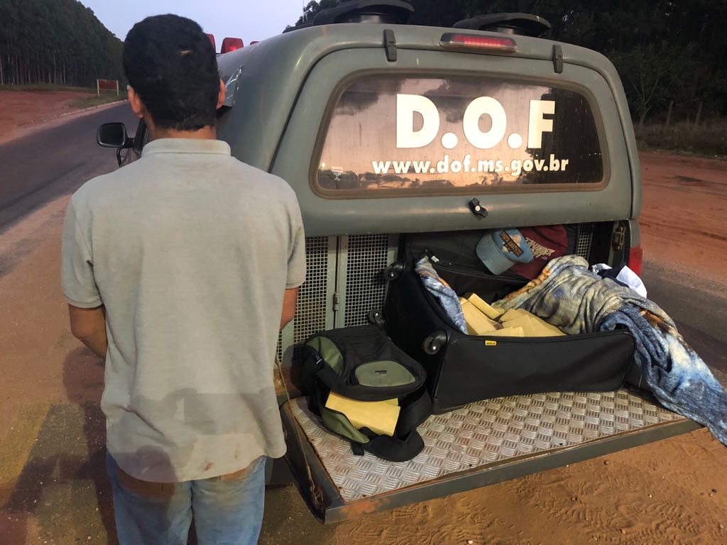 Ponta Porã (MS) – Policiais do Departamento de Operações de Fronteira (DOF) prenderam, na tarde de terça-feira (29) por volta das 17h, um homem de 23 anos de idade transportando 30,45 quilos de uma substância aparentando ser maconha que seriam