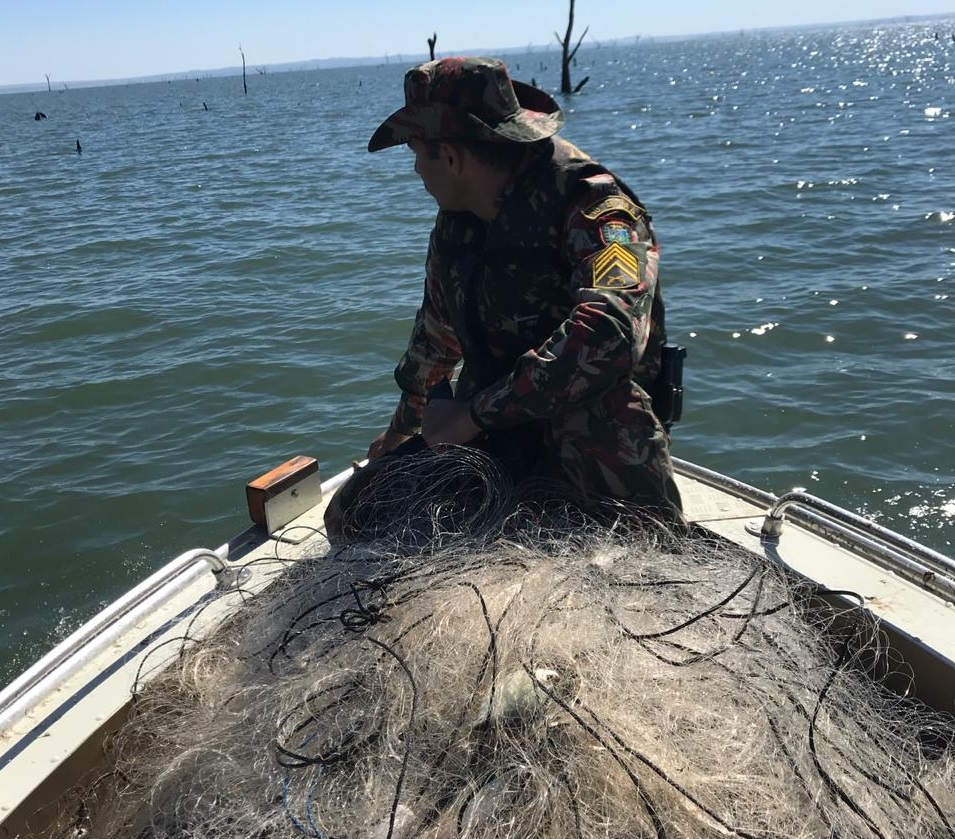 Campo Grande (MS) – Em fiscalização ambiental na madrugada e manhã de hoje (23) no lago da usina Sérgio Motta, no rio Paraná, no município, Policiais Militares Ambientais de Bataguassu apreenderam 30 redes de pesca de malha 90 milímetros (petrecho