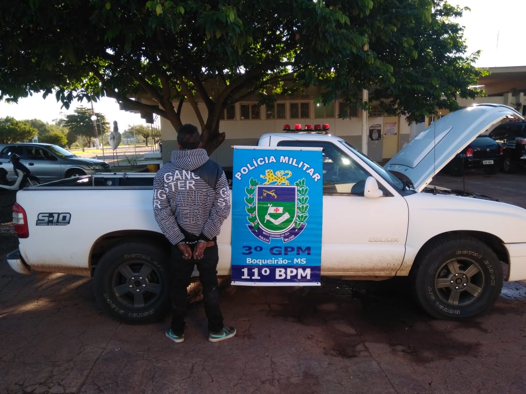 Jardim (MS) – Às 06h00min de sábado (19), a guarnição de serviço da Polícia Militar do distrito de Boqueirão realizava policiamento no perímetro urbano do distrito, quando deu ordem de parada ao condutor de um veículo Polo, de cor cinza. O