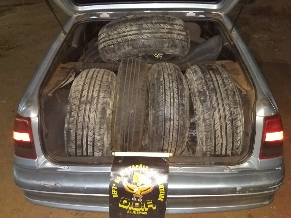 Ponta Porã (MS) – Policiais do Departamento de Operações de Fronteira (DOF) apreenderam na tarde de segunda-feira (14), por volta das 17h, um veículo Kadet de cor prata transportando 28 pneus adquiridos no Paraguai, sem a documentação de regularidade