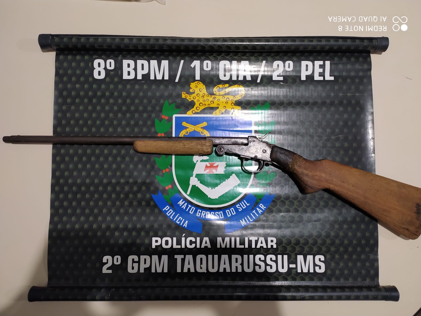 Nova Andradina (MS) – O 8º Batalhão de Polícia Militar, “Guardião do Vale do Ivinhema” através da equipe de Radiopatrulha de Taquarussu prendeu na noite de sexta-feira (10) um homem de 31 anos por porte ilegal de arma de fogo, na Travessa Irizeu