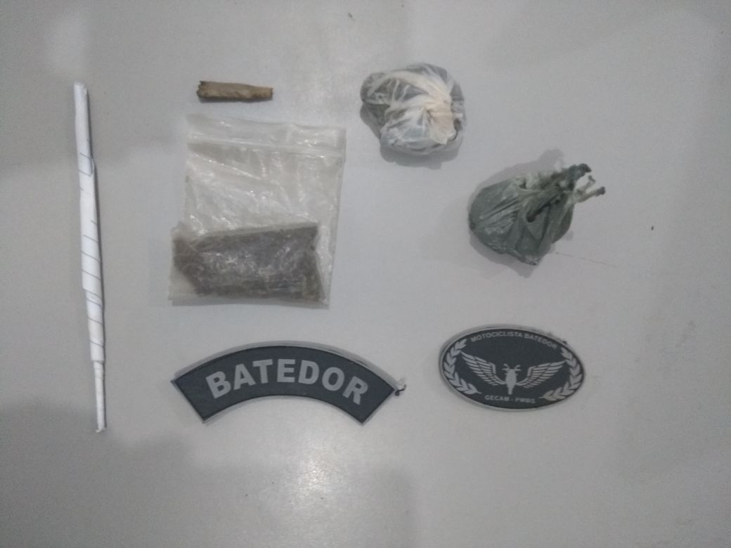 Maracaju (MS), Por volta das 19h, desta terça-feira (08), a guarnição de motocicletas realizou abordagem e busca pessoal em um grupo de 7 pessoas que estavam na praça da Vila Margarida logrou êxito em encontrar com quatro delas substancia vegetal