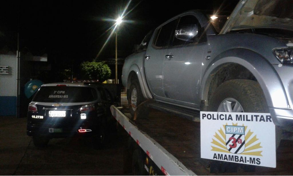 Amambai (MS) – Na madrugada da última quarta-feira (02), no município de Amambai (MS), os policiais militares realizavam rondas no centro da cidade, quando avistaram um Caminhão Guincho rebocando uma caminhonete com placa do Estado do Paraná. Ao