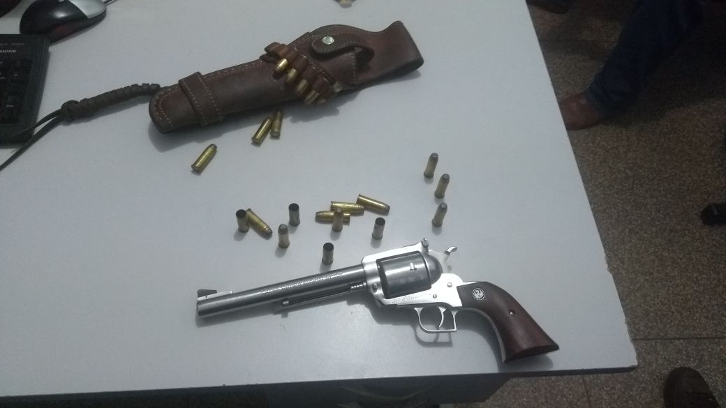 Nova alvorada do Sul (MS), Por volta das 19h, deste domingo (06), a guarnição recebeu informação via telefone 190, a qual relatava de disparo de arma de fogo em via publica e ameaça, a guarnição no deslocamento deparou com um indivíduo com as